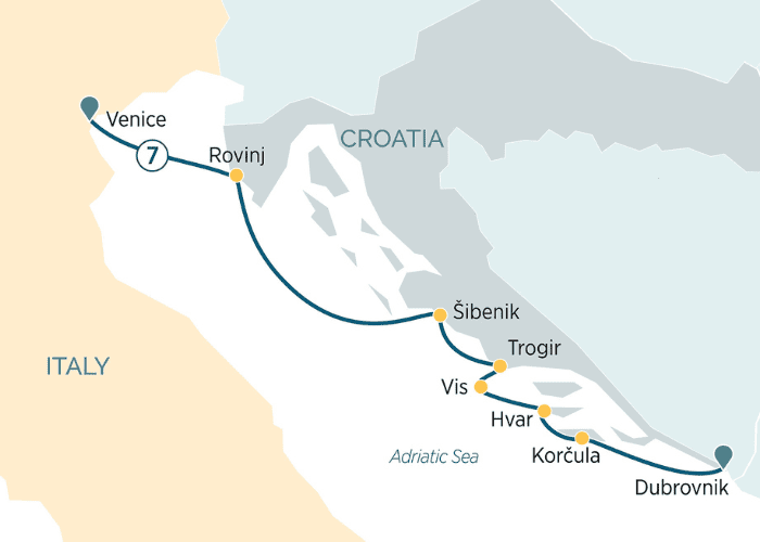 - 7 nights on board an Emerald Cruises luxury yacht from Venice to Dubrovnik